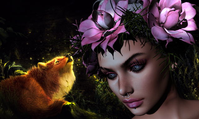 I found the most fabulous store called LODE, the maker creates beautiful floral head garlands, hats and other accessories. All at a really good price. The one I am wearing in this photo shoot is from the Nigella Collection, the pack contains 12 various colours and versions. Each of the garlands has a resize script, which I did not need to use.